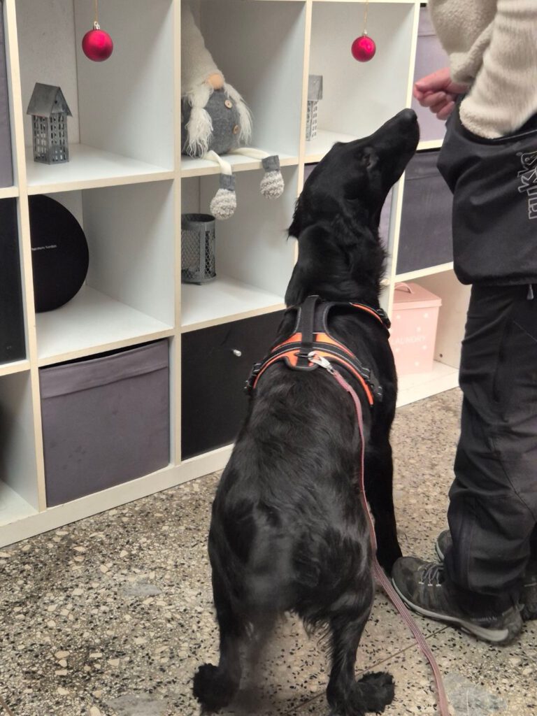 Ruth i inomhussök med tydligt hittande, december 2025.